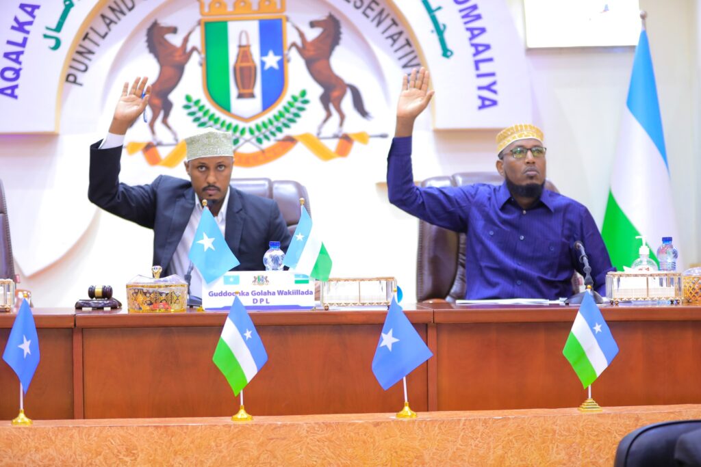Garoowe, 29 Luulyo 2025: Guddoomiyaha Golaha Wakiillada DPL Hon Abdirisak Ahmed Said oo uu wehliyo guddoomiye ku-xigeenka 2-aad Hon Mohamed Mahamud Esse ayaa maanta Shir-guddoomiyey fadhiga 24-𝒂𝒂𝒅 𝒆𝒆 𝑲𝒂𝒍𝒇𝒂𝒅𝒉𝒊𝒈𝒂 56-𝒂𝒂𝒅 Golaha Wakiillada Dawladda Puntland. Fadhiga maanta ayaa qorshe hawleedku sii wadista ka shaqeynta Xisaab-xirka Sannad-maaliyadeedka 2024 ee Puntland. Ugu horrayn waxaa Golaha laga hor akhriyey Warbixinta Guddiga Maaliyadda, Dhaqaalaha iyo Xisaabaadka Golaha Wakiillada ee 𝗫𝗶𝘀𝗮𝗮𝗯-𝘅𝗶𝗿𝗸𝗮 𝗦𝗮𝗻𝗻𝗮𝗱-𝗺𝗮𝗮𝗹𝗶𝘆𝗮𝗱𝗲𝗲𝗱𝗸𝗮 𝟮𝟬𝟮𝟰. Intaas ka dib, Goluhu wuxuu cod aqlabiyad leh ku Meelmariyeen ansixiyey Xisaab-xirka Sannad-maaliyadeedka 2024 si waafaqsan Qodobada 64(13) iyo 137(1) ee Dastuurka DPL iyo qodobka 64 ee Xeer-hoosaadka Golaha Wakiillada DPL, Waxaa Oggol ugu codeeyey 38 Mudane, Diidmo 2 Mudane, halka aysan jirin cid ka aamustay. Ugu dambayn, Mudanayaasha Golaha Wakiillada Dowladda Puntland ayaa cod gacan-taag ah ku oggolaaday in maanta si rasmi ah loo soo xiro Kalfadhiga 56-aad ee Golaha. DHAMMAAD –