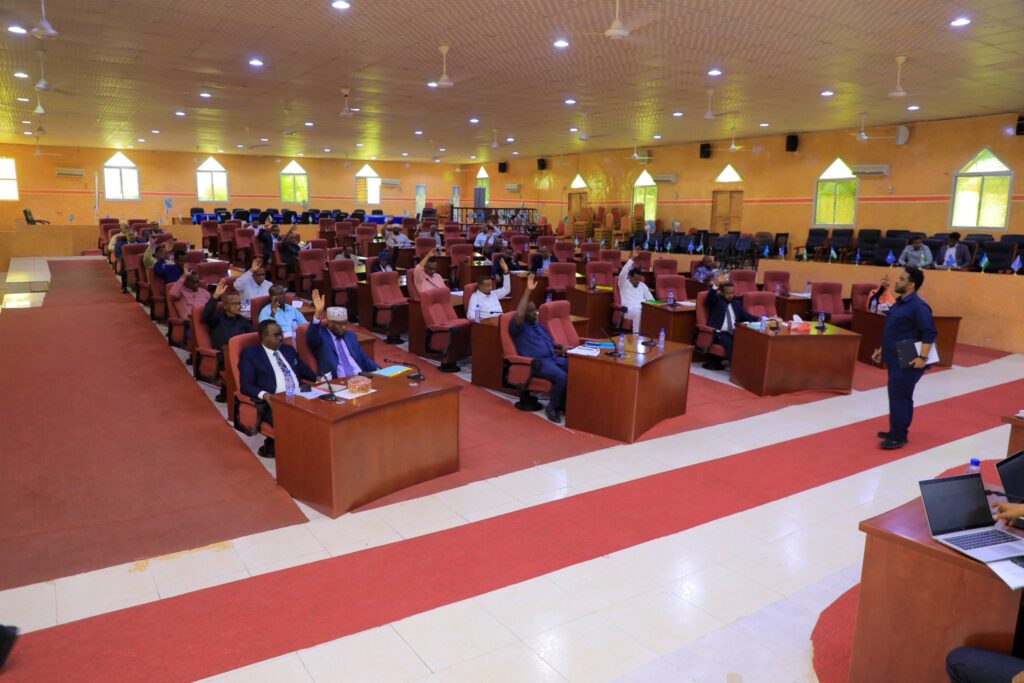 Garoowe, 12 Luulyo 2025: Guddoomiyaha Golaha Wakiillada DPL Hon Abdirisak Ahmed Said oo uu wehliyo guddoomiye ku-xigeenka 2-aad Hon Mohamed Mahamud Esse ayaa maanta Shir-guddoomiyey fadhiga 14-aad ee Kalfadhiga 56-aad Golaha Wakiillada Dawladda Puntland.