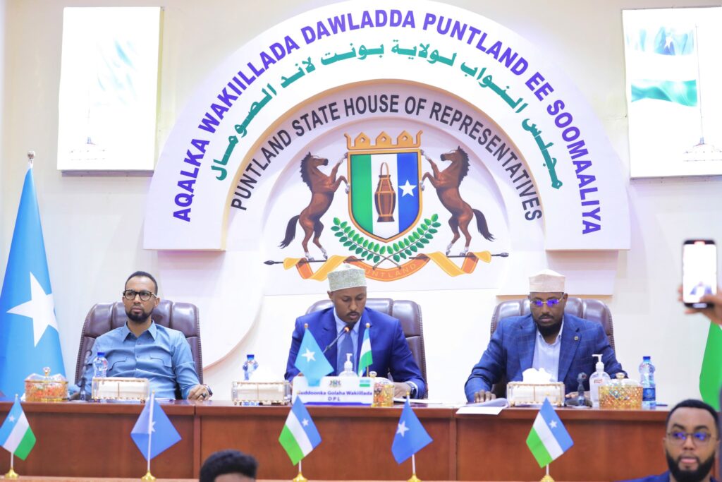 ๐๐๐ซ๐จ๐จ๐ฐ๐, ๐๐ ๐๐ค๐ญ๐จ๐จ๐๐๐ซ ๐๐๐๐ โ Guddoomiyaha Golaha Wakiillada Dowladda Puntland, Hon Abdirisak Ahmed Said, oo ay weheliyaan Guddoomiye Ku-xigeenka 1-aad Hon Mohamed Baarri Shire, iyo Guddoomiye Ku-xigeenka 2-aad Hon Mohamed Mahamud Esse, ayaa maanta shir-guddoomiyay Fadhiga 3-aad ee Kalfadhiga 57-aad ee Golaha Wakiillada.