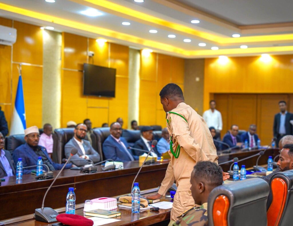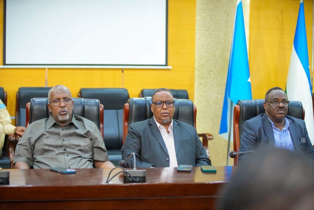 Garowe, 20 April 2026- Guddoomiye ku-xigeenka 1-aad Hon Mohamed Baarri Shire iyo Guddoomiye ku-xigeenka 2-aad Hon Mohamed Mahamud Esse ee Golaha Wakiillada Dowladda Puntland ayaa ka qayb galay munaasabadda dhaarinta Maxkamadda Sare iyo Maxkamadda Darajada 1-aad ee Ciidamada Qalabka Sida iyo Dambiyada Culus, taas oo uu goob joog ka ahaa Madaxweynaha Dowladda Puntland, Mudane Siciid Cabdullaahi Deni.